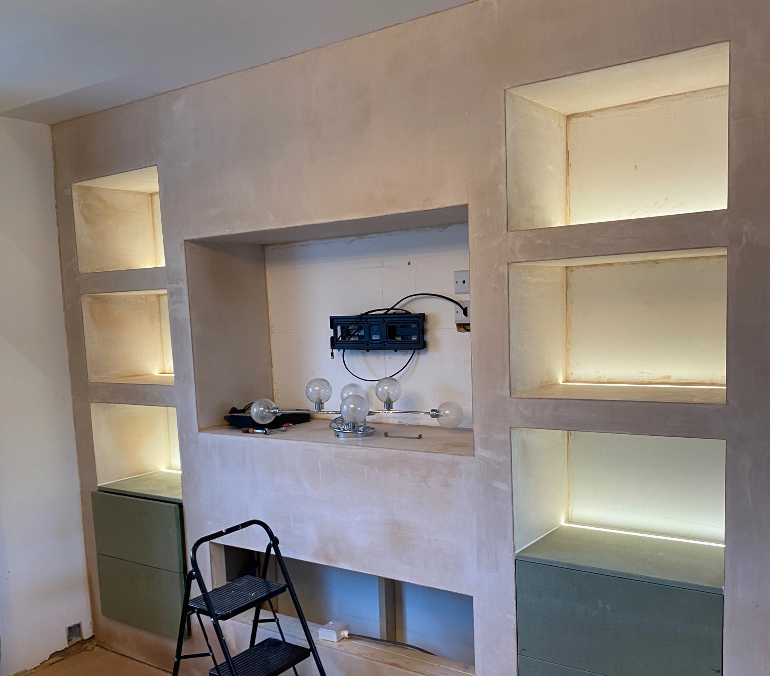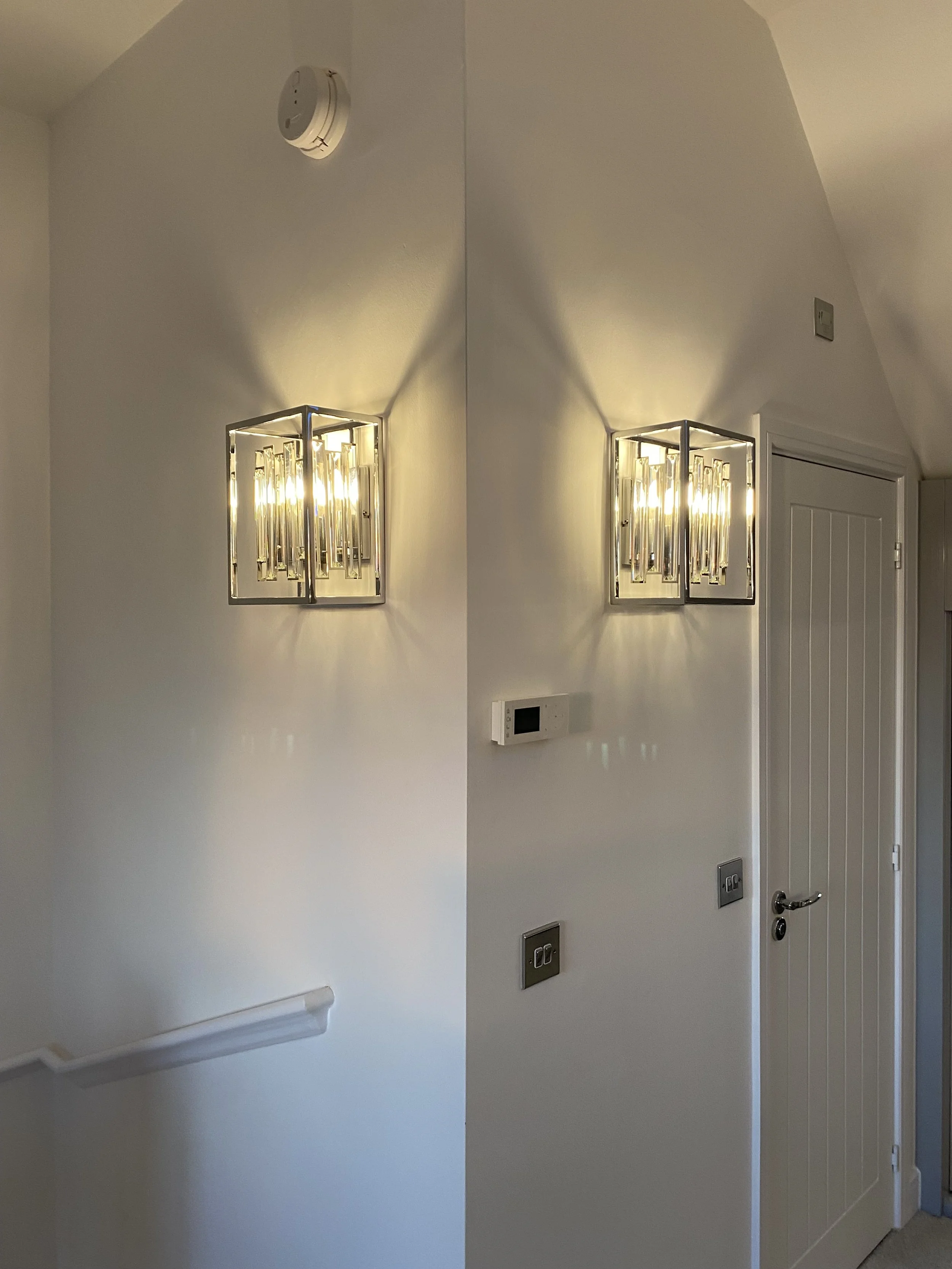 Domestic electrical install involving setting up electrical systems in homes, including wiring, lighting, sockets, and appliances